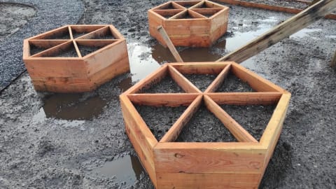 - Hexagonal Larch mint beds with dividers approx 1m diameter