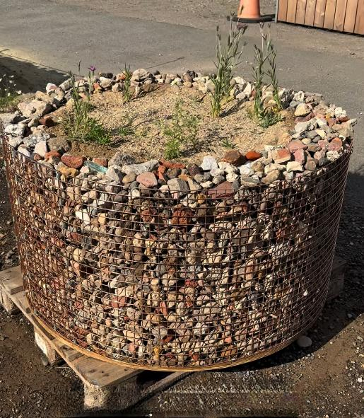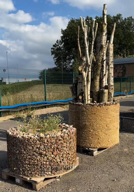 - Standing dead - 1 tonne bag, artistically filled with rubble and standing dead wood, 50mm mesh gabion filled withs alternating layers of 75mm rubble and old sheeps wool.